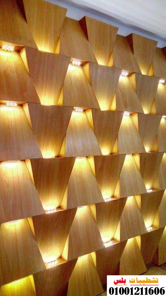 هذه الطريقة تعطي مظهرًا عصريًا وفريدًا من نوعه، حيث تُغطى الجدران بالكامل بالخشب، ثم يتم وضع الليد بروفايل في الجزء العلوي من الخشب.
